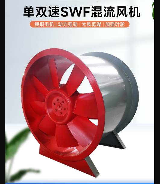 介于軸流風(fēng)機(jī)和離心風(fēng)機(jī)之間的風(fēng)機(jī),混流風(fēng)機(jī)的葉輪讓空氣既做離心運(yùn)動(dòng)又做軸向運(yùn)動(dòng),殼內(nèi)空氣的運(yùn)動(dòng)混合了軸流與離心兩種運(yùn)動(dòng)形式,所以叫“混流”。