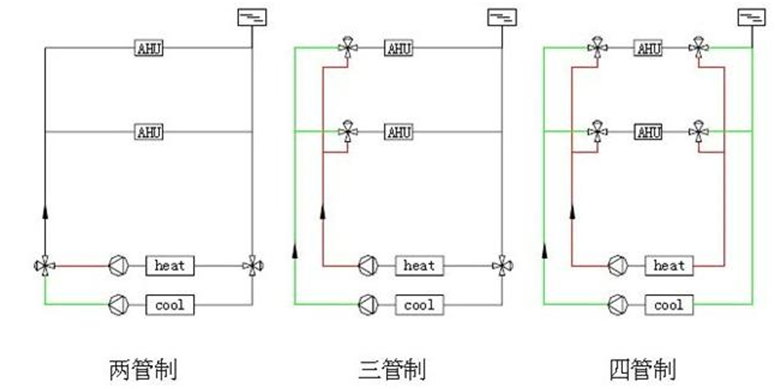 兩種控制:冬季熱水供應和夏季冷水供應在同一管道系統(tǒng)中進行。。